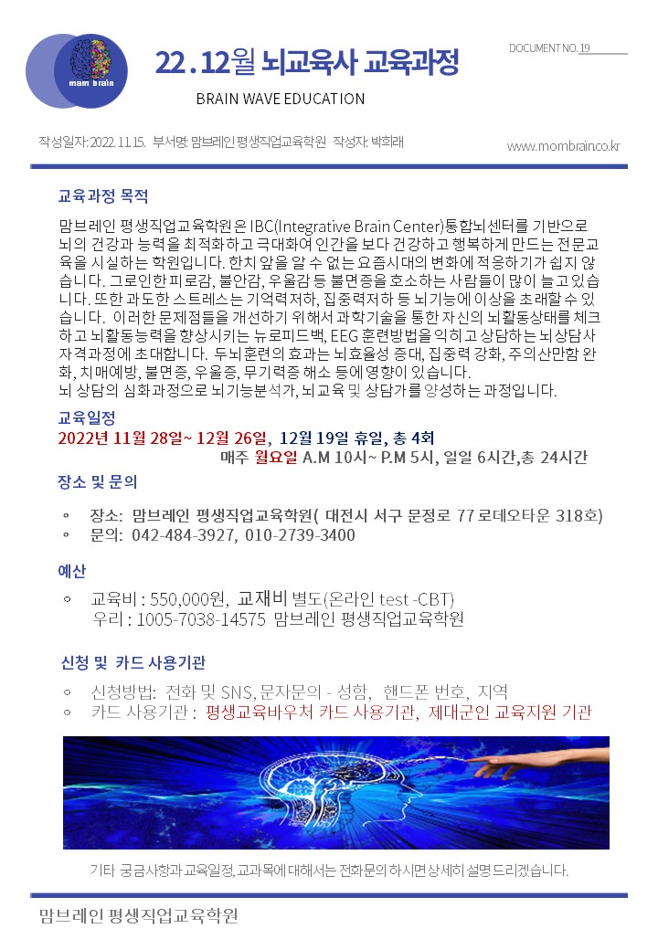 22. 12월 뇌교육사 교육과정 (BRAIN WAVE EDUCATION)